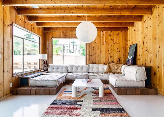 Situé dans le quartier "Palm Springs Uptown", villa se trouve à 10 minutes en voiture de l'aéroport de Palm Springs. Si vous souhaitez visiter les environs, rendez-vous au Parc Baristo, à environ 25 minutes à pied de ce lieu. Située non loin de Palm Springs Presbyterian Church, Villa The Pom Pom House est une destination populaire auprès des fidèles et des touristes.